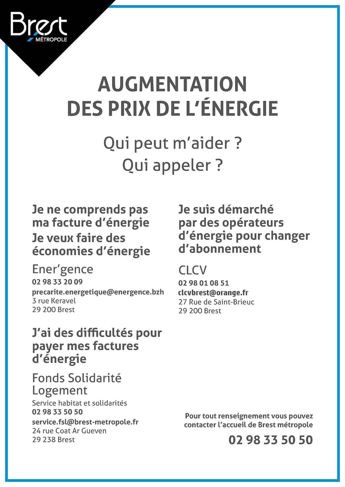 Nous aidons aussi les usagers de Brest et de ses environs en cas de problème avec une administration, avec l’entreprise de transport en commun brestoise Bibus, etc.